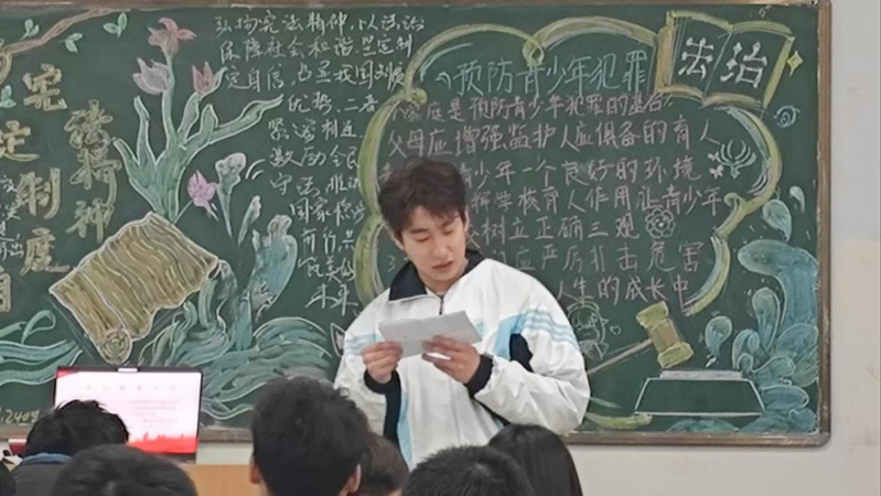 “弘扬宪法精神,坚定制度自信” 宪法是最为公平公正的盾牌。无论是男,还是女;无论是年老,还是年少;无论是个人,还是群体;无论是我国公民,还是外国人;无论是贫穷者,还是富贵者,宪法都规定他们享有广泛的基本权利,毫无差别地对待着他们。我们青少年预防犯罪要从预防不良行为的发生做起。让我们用宪法规范自己的行为,深入学习、宣传宪法,全面深刻理解宪法的基本原则和精神,充分认识社会主义制度的优越性,增强宪法意识、公民意识、爱国意识和民主法治意识,大力弘扬法治精神。让我们行动起来做宪法宣传教育的有心人,做个知法、懂法、守法、用法的好青年!